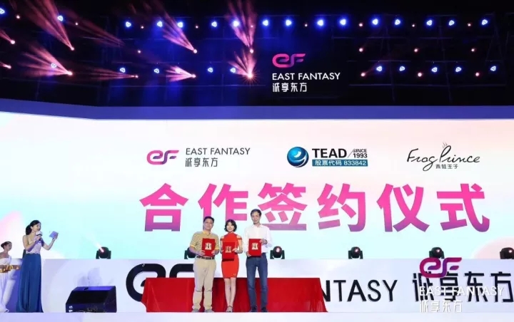 2017年10月21日,在誠享東方掛牌慶典晚會上,天藝傳媒攜手知名美妝移動電商——誠享東方,及國內(nèi)領先日化企業(yè)——青蛙王子在廈門音樂島正式舉行簽約儀式。三方將在未來共同推出以“阿巴兔”為品牌形象的兒童護理系列產(chǎn)品。